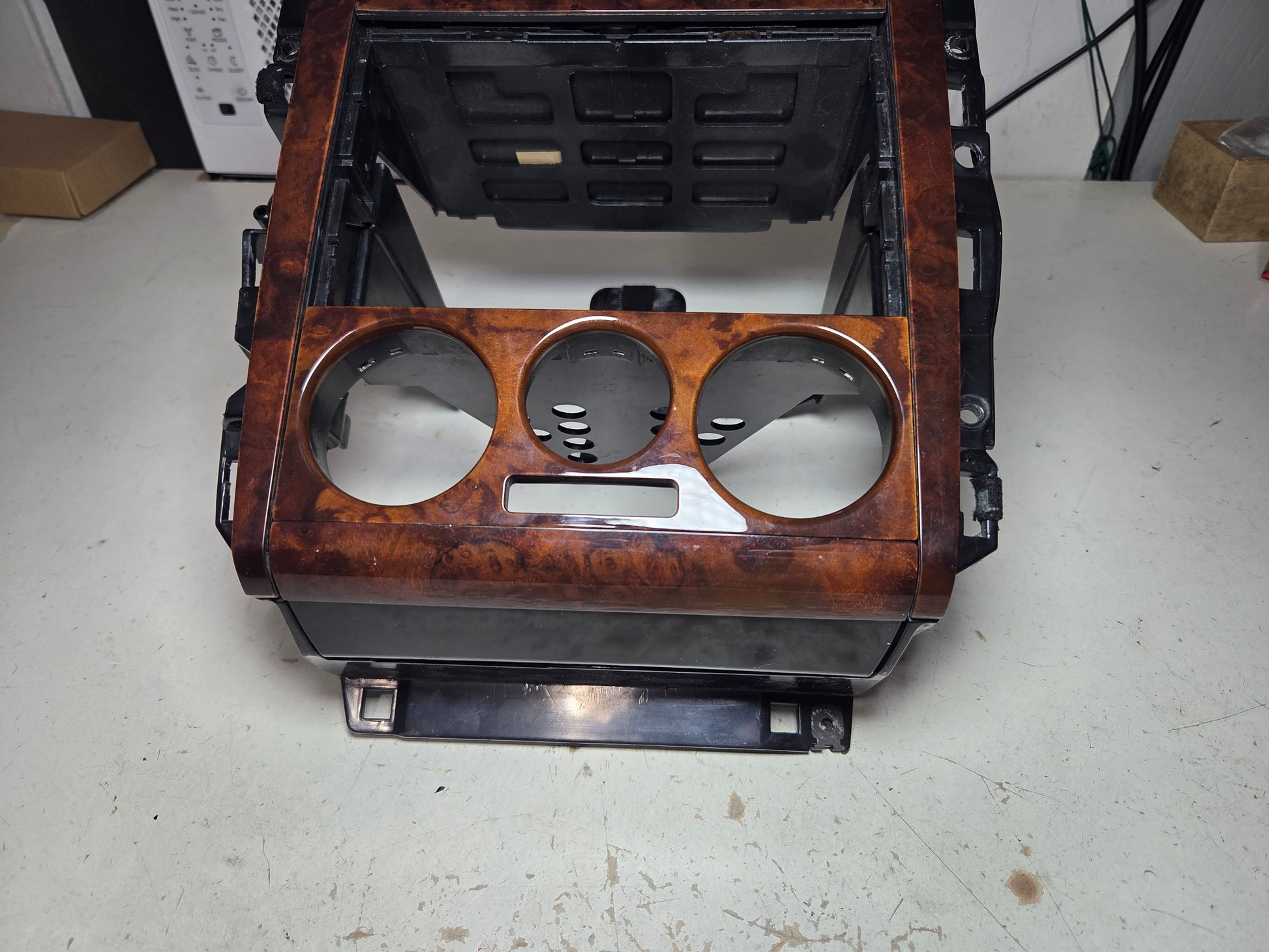 Wood grain radio cage with all trim for mk4 jetta and golf. Wood is in good condition, no cracks. Cup holder works. Comes as shown in photos.